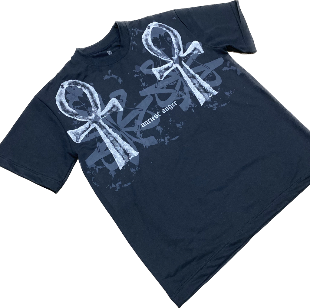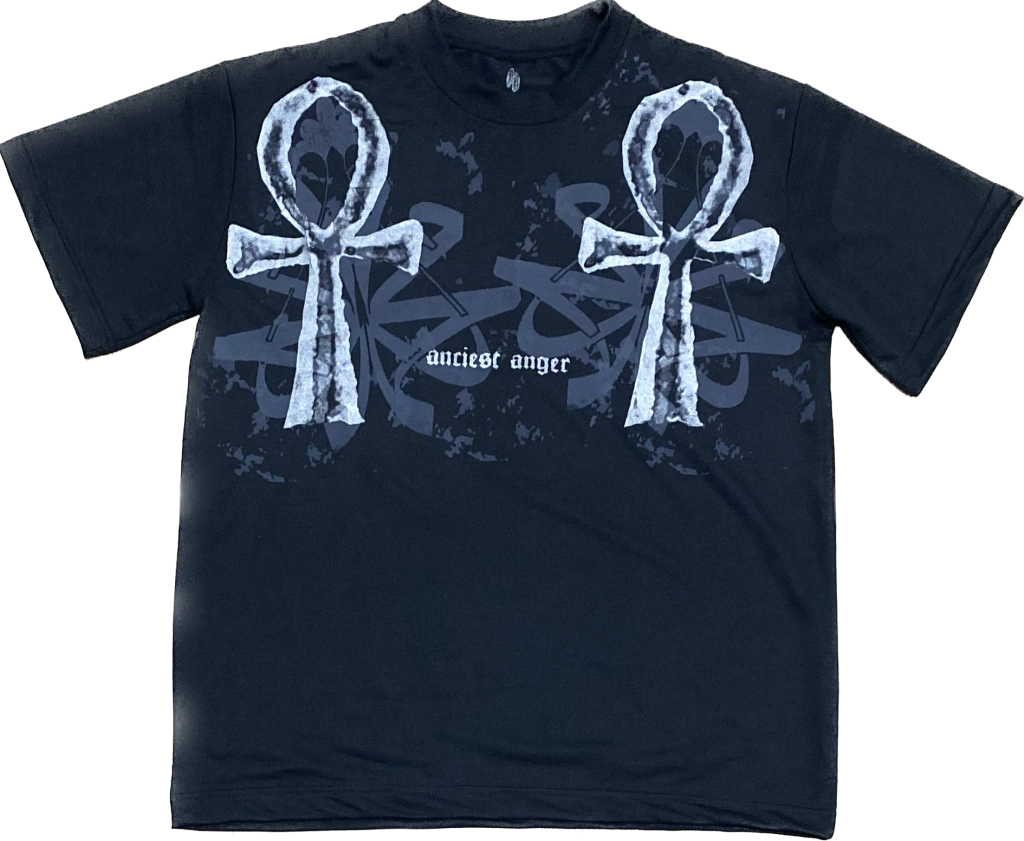 Camiseta preta em malha penteada pesada mista algodão estampa em silkscreen